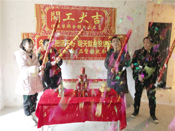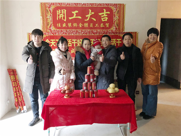 業主、設計師、項目經理開工合影: