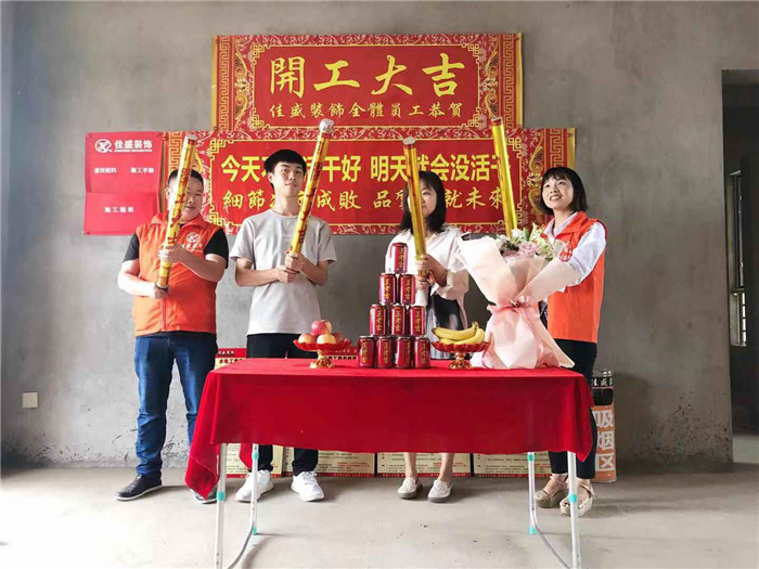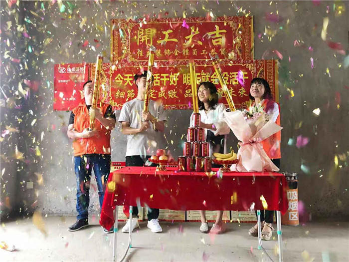 業主、設計師、項目經理開工合影: